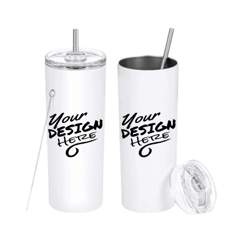 20oz dishwasher safe skinny tumbler for customization. Print your name, logo, picture. Perfect gift for mom, fathers, coworkers, boss, friends, as a holiday, farewell, or just for fun